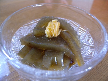 充分に乾かして糖化した南瓜を昆布出汁で炊き、