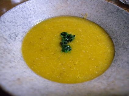 ミキサーしてから、再び火にかけ、塩コショウで調えます。