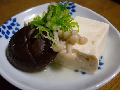 干し椎茸とエノキ、シメジで濃い目に引いた出汁をかけます。